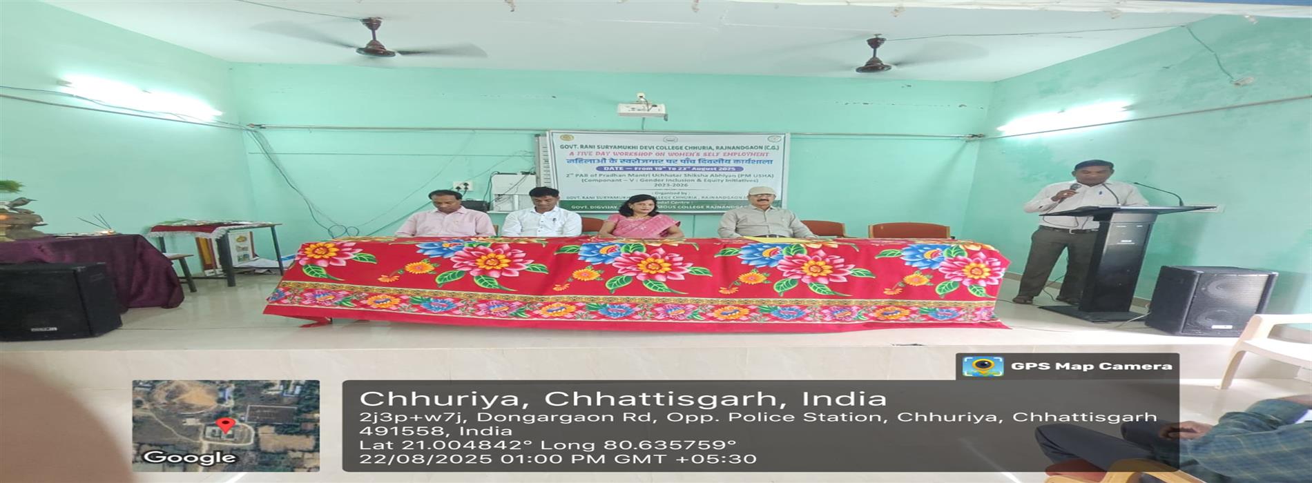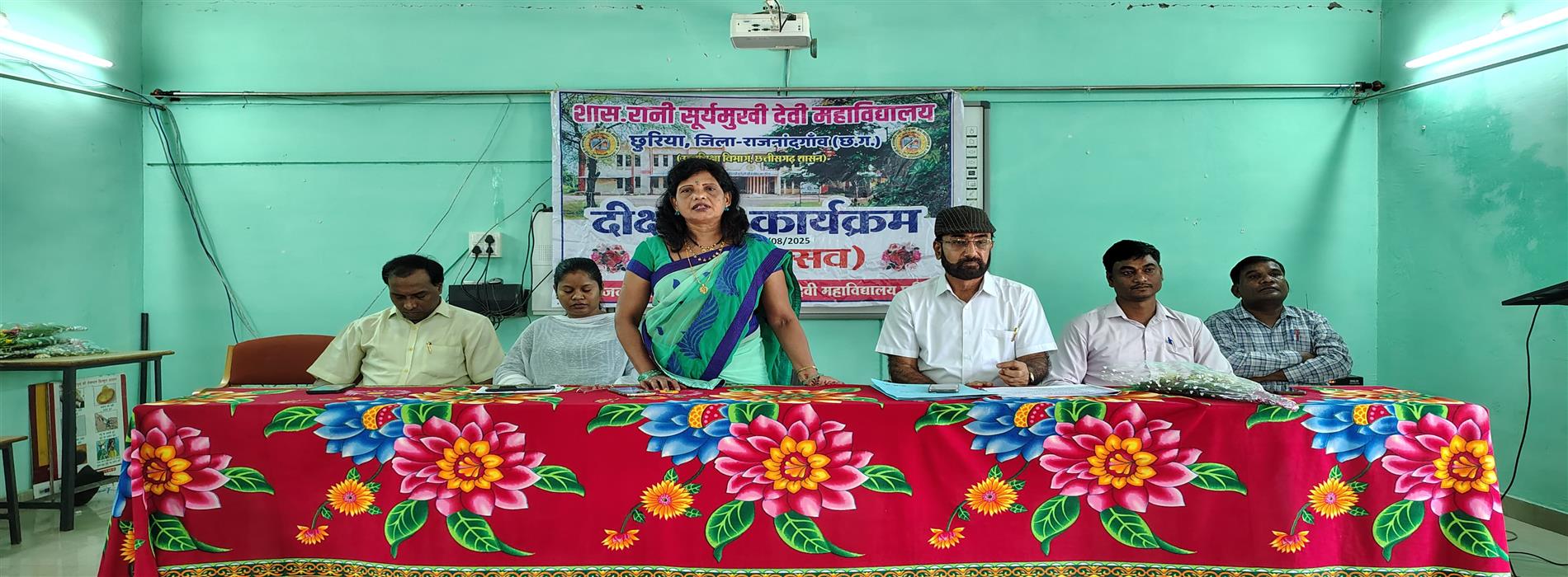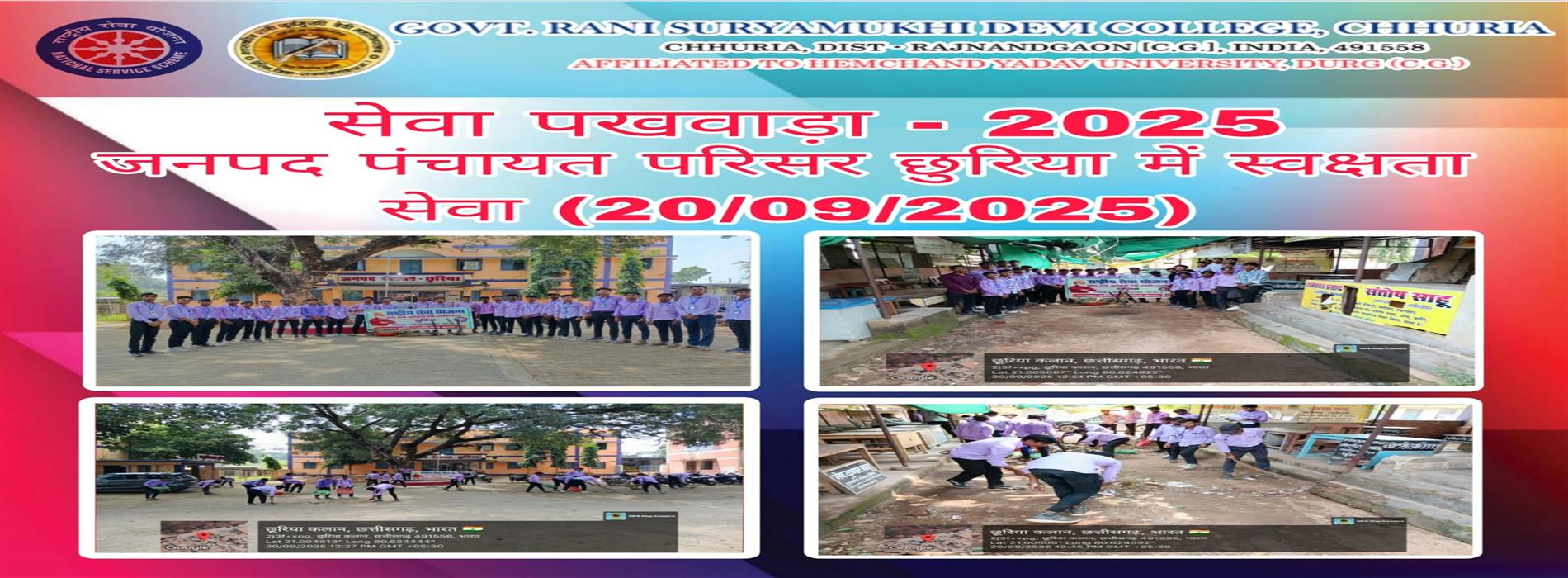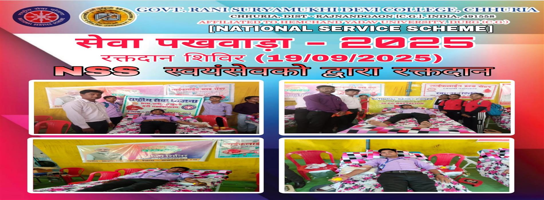 It was through meticulous planning and hard work of the teachers, local Political leaders and the administrative staff that, in spite of many limitations, the College came to be recognized as an important institute of higher education in the Rajnandgaon District of C.G. From its humble beginnings in a small school building. Govt. Rani Suryamukhi Devi College  Chhuria has indeed come along way. Today, it attracts students from all over sections of society. It is our sincere belief that the College will scale greater heights and occupy its rightful position in higher education in the years to come.