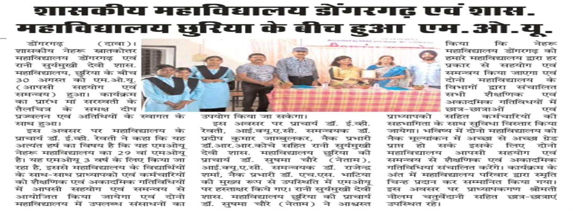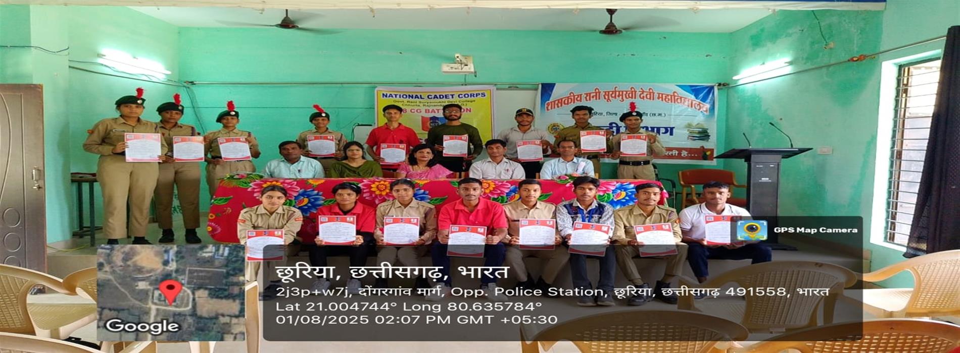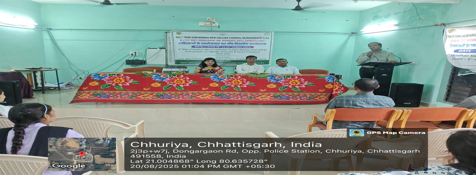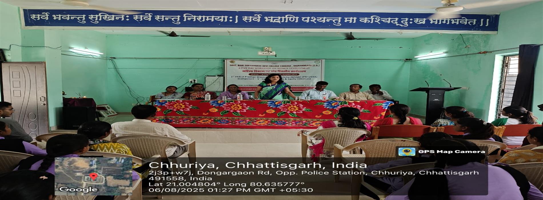 It was through meticulous planning and hard work of the teachers, local Political leaders and the administrative staff that, in spite of many limitations, the College came to be recognized as an important institute of higher education in the Rajnandgaon District of C.G. From its humble beginnings in a small school building. Govt. Rani Suryamukhi Devi College  Chhuria has indeed come along way. Today, it attracts students from all over sections of society. It is our sincere belief that the College will scale greater heights and occupy its rightful position in higher education in the years to come.